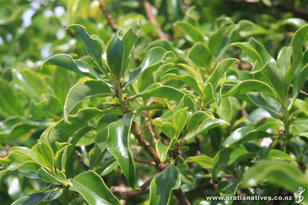 These are the leaves of a ngaio on Long Island, Queen Charlotte Sound. They are common in the Cook Strait Ecological District. |